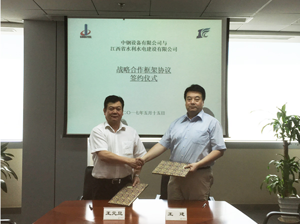 集團(tuán)資訊2017年5月15日,江西省水利水電建設(shè)有限公司與中鋼設(shè)備有限公司戰(zhàn)略合作框架協(xié)議簽約儀式在北京舉行。公司董事長王元旦與中鋼設(shè)備有限公司總經(jīng)理王建代表雙方簽署了戰(zhàn)略合作框架協(xié)議。公司海外公司副總經(jīng)理熊昊冠和中鋼設(shè)備能源與基礎(chǔ)設(shè)施部副部長閆永軍、國際市場部副部長王思奇、市場主管姬曉軍參加簽字儀式。王建表示中鋼公司有著海外平臺優(yōu)勢,江西水建擁有水利水電、房建和市政領(lǐng)域的技術(shù)優(yōu)勢,希望雙方以此次戰(zhàn)略合作簽署為契機(jī),借助各自在資源、業(yè)務(wù)等方面的綜合優(yōu)勢,在巴基斯坦市場以及其他國別市場攜手共進(jìn),推進(jìn)重點(diǎn)項(xiàng)目落地,共謀發(fā)展。公司董事長王元旦對中鋼設(shè)備的支持表示感謝。他表示此次合作將會是一個友好的開端,真誠希望雙方在國家“一帶一路”戰(zhàn)略指引下進(jìn)一步加深交流,探索多方位、深層次合作,實(shí)現(xiàn)互利共贏。