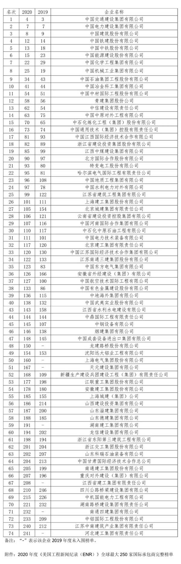 美國當(dāng)?shù)貢r(shí)間8月20日,2020年度美國《工程新聞紀(jì)錄(ENR)》“全球250家國際承包商”榜單發(fā)布。