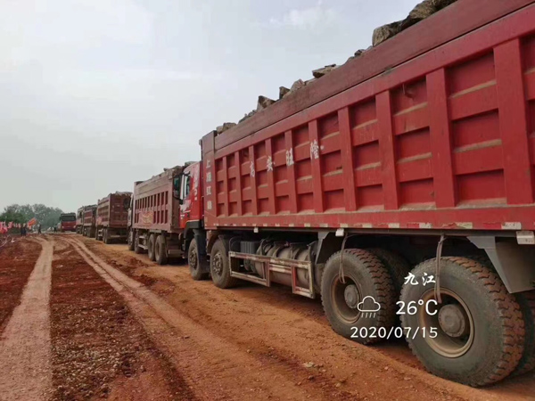 7月15日凌晨,貨車連夜運送石料入場,現(xiàn)場材料調(diào)度人員徹夜不休,僅借助貨車大燈照明,順利完成調(diào)度工作。當日,決口成功封堵70米。